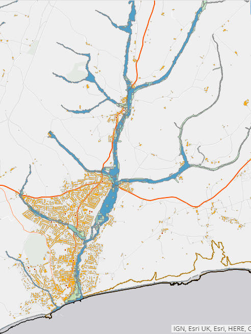Map: Projected flooding in the Sid Valley 2100: Climate change and flooding in East Devon