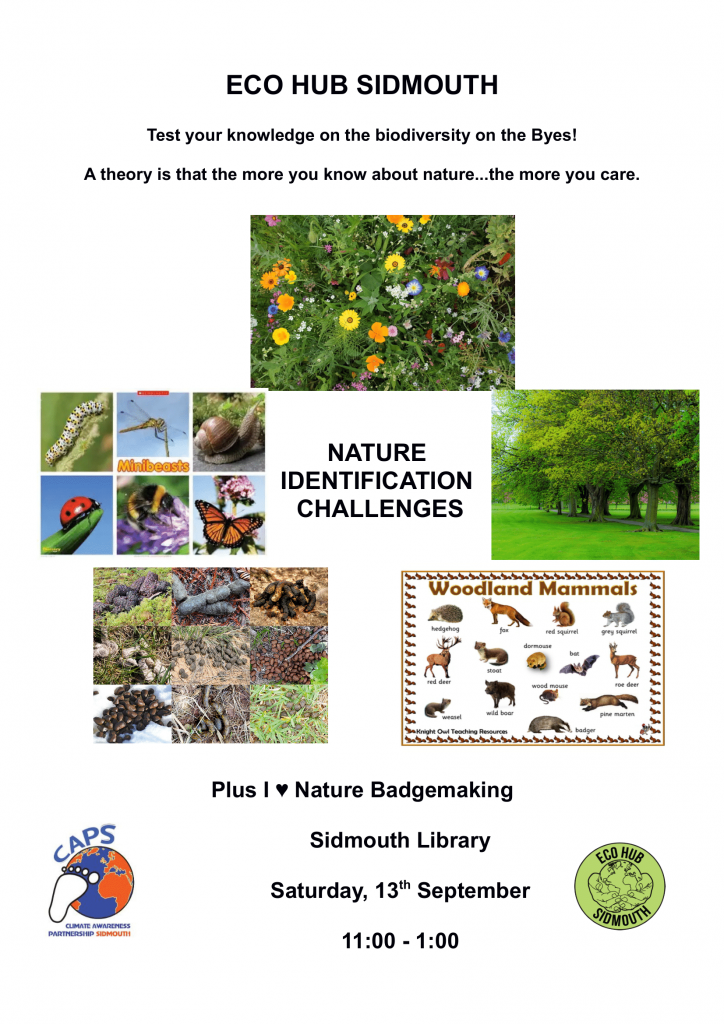 “The first Eco Hub Sidmouth session this autumn is called Nature Identification Challenges and it’s based on the understanding that the more you know about nature, the more you care about it and want to look after it.”.