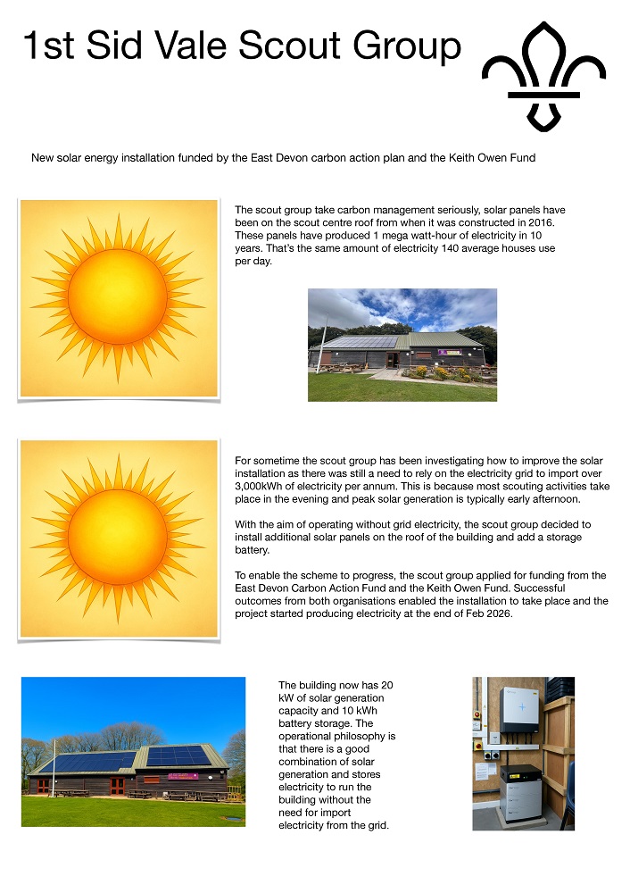And one of those groups present will be the Scouts! Do come along and see what they’ve done – and also see what might be possible for your home or business, as there are all sorts of grants and help out there to take advantage of.